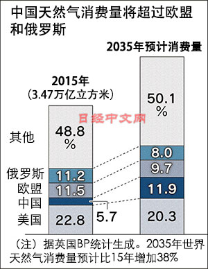 中國政府制定了到2030年的天然氣中長期計(jì)劃,英國石油公司(BP)也發(fā)布了到2035年的能源動向預(yù)測。屆時(shí),天然氣的全球消費(fèi)量將超過煤炭,按不同地區(qū)來看,中國消費(fèi)量增加顯著,將超過歐盟和俄羅斯,成為僅次于美國的世界第2大天然氣消費(fèi)國。