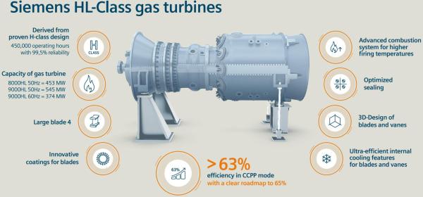 據介紹,西門子HL級燃氣輪機包含三款機型:SGT5-9000HL、SGT6-9000HL和SGT5-8000HL,三款燃機均可實現超過63%的聯合循環(huán)效率。