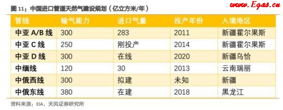 中國(guó)的進(jìn)口管道氣目前主要來自中亞的土庫曼斯斯坦,已經(jīng)投入使用的中亞ABC線合計(jì)輸氣能力達(dá)550億立方米/年,在建的中亞D線預(yù)計(jì)2020年投產(chǎn),輸氣能力達(dá)300億立方米。由于烏克蘭危機(jī)造成俄羅斯和歐洲關(guān)系緊張,并且主要輸往歐洲的天然氣管網(wǎng)都要進(jìn)過敵對(duì)的烏克蘭,這就造成俄羅斯將其天然氣銷售方向逐步轉(zhuǎn)為亞洲。并且由于遭受國(guó)際制裁和原油價(jià)格暴跌導(dǎo)致出口收入大幅下降,俄羅斯也最終放開了遠(yuǎn)東地區(qū)的資源開發(fā),長(zhǎng)期看這也將大幅增長(zhǎng)我國(guó)北部能源的潛在供給。