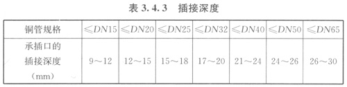 4制冷劑管道的連接宜采用承插釬焊焊接或套接釬焊焊接,插接深度應(yīng)符合表3.4.3的規(guī)定;