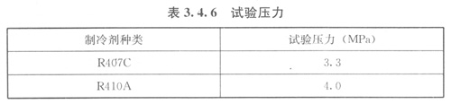1嚴(yán)密性試驗介質(zhì)應(yīng)采用干燥的壓縮空氣或氮氣,試驗壓力應(yīng)符合表3.4.6的規(guī)定,其他種類的制冷劑試驗壓力應(yīng)為設(shè)計壓力的1.25倍。