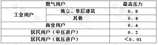 10.2.2燃?xì)夤?yīng)壓力應(yīng)根據(jù)用戶(hù)設(shè)備燃燒器的額定壓力及其允許的壓力波動(dòng)范圍確定。