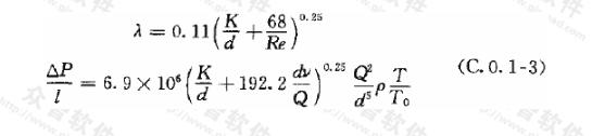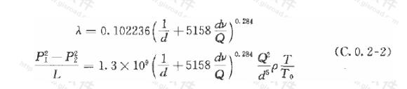 注:除附錄C所列公式外,其他計(jì)算燃?xì)夤艿滥Σ磷枇ο禂?shù)(λ)的公式,當(dāng)其計(jì)算結(jié)果接近本規(guī)范式(6.2.6-2)時(shí),也可采用
