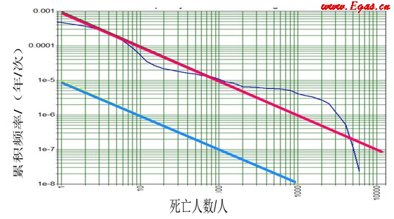 綜合考慮,我國采用香港地區(qū)的社會可接受風險標準值,作為個人可接受風險標準的補充對危險源造成群死群傷事故風險的可接受程度進行評估。