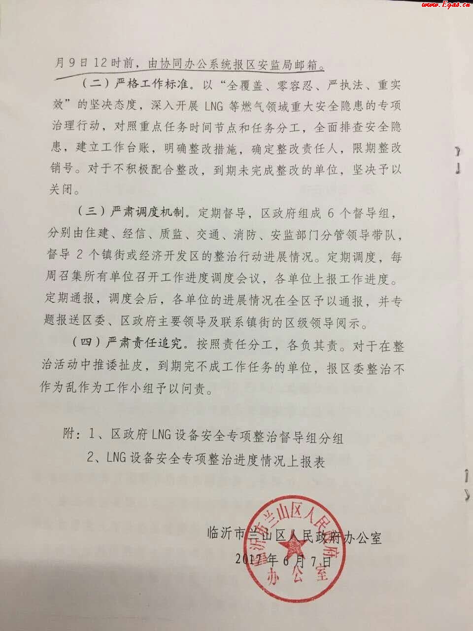 2017年6月5日,山東臨沂的金譽石化有限公司發(fā)生爆炸。2017年6月7日,山東省臨沂市蘭山區(qū)安全生產(chǎn)委員會在發(fā)布了《關(guān)于開展企業(yè)自用lng設(shè)備等燃?xì)獍踩珜m椪涡袆拥耐ㄖ?/p>
