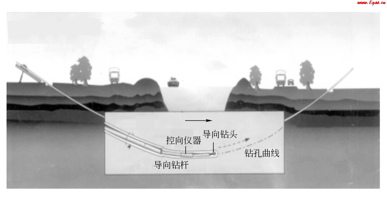 定向鉆法是一種經(jīng)濟(jì)實(shí)用,可以做到管道埋深達(dá)到安全可靠目的的敷管方法,宜作為管道穿越的第一優(yōu)選方法。定向鉆的優(yōu)點(diǎn)為:對(duì)地表的干擾較?。皇┕に俣瓤?;可控制鋪管方向,施工精度高。定向鉆的不足之處在于對(duì)施工場(chǎng)地要求較高,在礫石層中施工比較困難,一般不適用于成孔困難的地層。