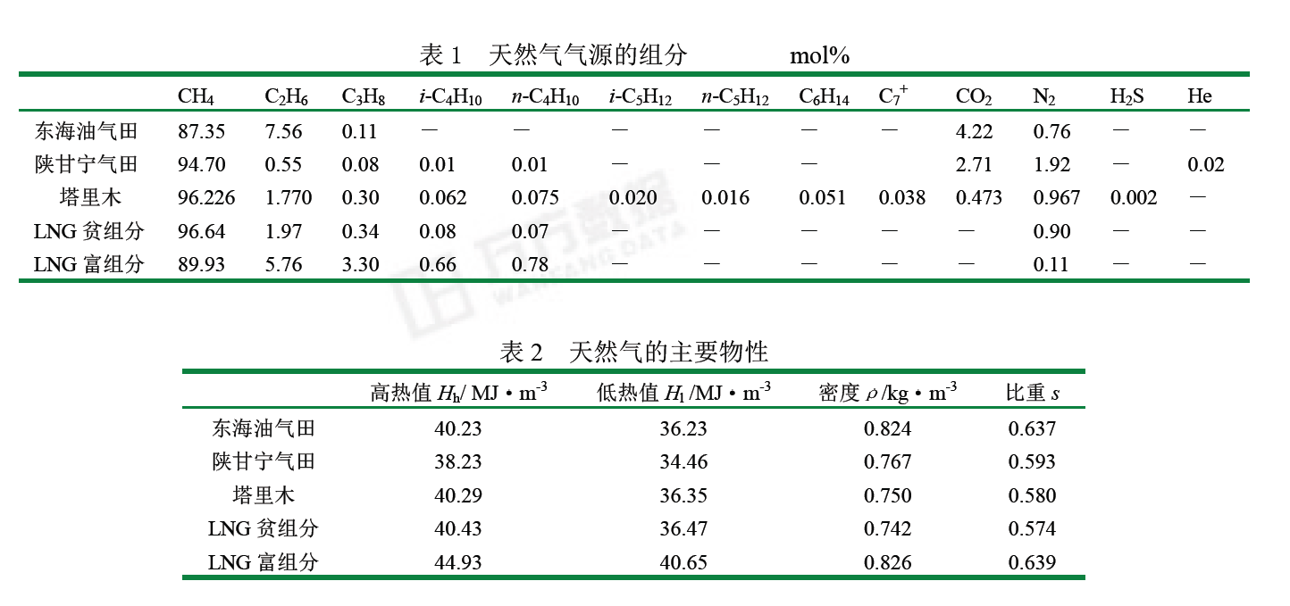 進(jìn)口LNG及全國(guó)天然氣組份體積百分比或熱值華白數(shù)匯總參考