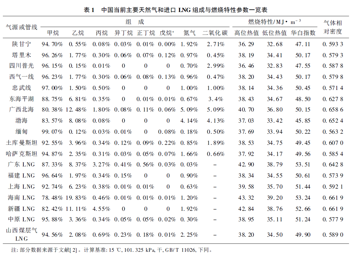 進(jìn)口LNG及全國天然氣組份體積百分比或熱值華白數(shù)匯總參考