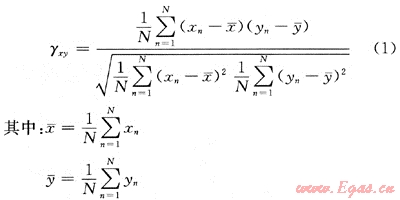 設(shè)重復(fù)曲線段上有N個(gè)采樣點(diǎn),表示為xn(n=1,2,…,N),在主曲線上取同深度的N個(gè)采樣點(diǎn)表示為yn(n=1,2,…,N),則xn與yn相關(guān)系數(shù)計(jì)算公式如下:
