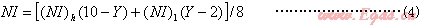式中:(NI)h——式(3)高充填因數(shù)線圈計算的NI值;(NI)1——式(1)或式(2)低充填因數(shù)線圈計算的NI值; Y——線圈的橫截面積與工件橫截面積之比。