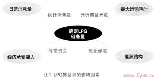 最后也必須統(tǒng)籌考慮城市的能源結(jié)構(gòu)、經(jīng)濟(jì)承受能力。不能讓LPG儲(chǔ)備成為其他新能源建設(shè)和經(jīng)濟(jì)發(fā)展的阻礙與負(fù)擔(dān)。圖1顯示LPG儲(chǔ)備量的影響因素