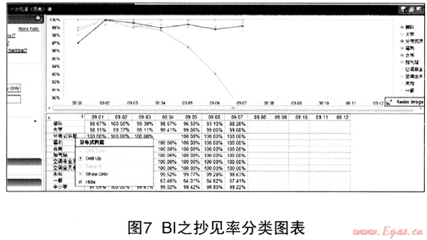 GDIA系統(tǒng)對數(shù)據(jù)挖據(jù)及BI展現(xiàn)作了有意義的嘗試。BI展現(xiàn)技術(shù)可按使用者的不同管理思路和需要,進行多維度的自由分解展現(xiàn),系統(tǒng)實現(xiàn)了抄見率、賬款回收等指標的深層挖掘和分解下鉆,為管理者提供了全新的分析角度,起到了抄表銷售管理和賬務(wù)管理的輔助決策工具的作用。該功能的實現(xiàn)也對使用者提出了很高要求,使用者不僅要熟練掌握各類業(yè)務(wù)流程及熟悉系統(tǒng)數(shù)據(jù)結(jié)構(gòu),同時需要具備相當(dāng)廣度與深度的管理分析能力。