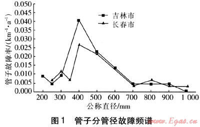 ① 吉林和長(zhǎng)春兩座城市的熱網(wǎng)管子分管徑故障率變化趨勢(shì)基本一致,即隨著管徑的減小而增大,當(dāng)管子規(guī)格為DN 350~450mm時(shí)故障率達(dá)到高峰。