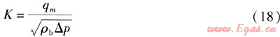 將數(shù)據(jù)qV=3000m3/h,ρn=1.293kg/m3,L=273.15K,pg=5kPa,p0=100kPa,pn=101.32kPa,t=20,△p=0.74377kPa代入式(12),可求得:K=4025.3021。