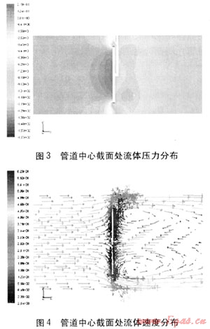 在對(duì)其他兩種形狀靶片進(jìn)行模擬時(shí),管道內(nèi)部流體壓力、速度分布與圓盤形靶片相似。但由于這兩種形狀的靶片與圓盤形靶片相比外形變化緩慢,因此采用這兩種形狀靶片時(shí),流體的壓力、速度變化沒(méi)有采用圓盤形靶片時(shí)快。