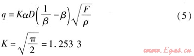 由式(5)可得到流體質(zhì)量流量qm的計(jì)算式為: