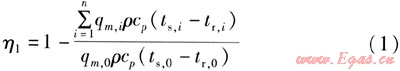 室外管網(wǎng)熱損失率η1的計(jì)算式為: