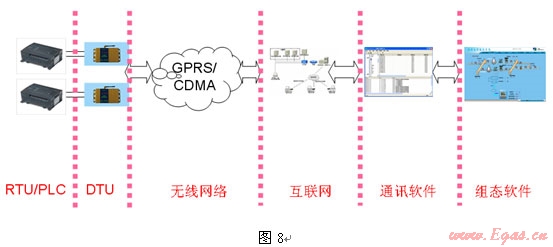 對城市燃?xì)獯笥脩簟⒐芫W(wǎng)不利點(diǎn)、區(qū)域計量站等實(shí)時性要求不高的站點(diǎn)一般采用CDMA X1/GPRS 無線通信方式,無線通信優(yōu)點(diǎn)是運(yùn)行費(fèi)用低,但通信實(shí)時性、通信網(wǎng)絡(luò)穩(wěn)定性和可靠性都不高。為了解決無線通信軟件缺陷,可以通過開發(fā)多功能通信軟件來彌補(bǔ)無線通信實(shí)時性和穩(wěn)定性不高的缺陷。