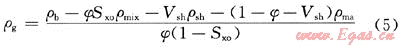 ρb=φ[ρg(1-Sxo)+Sxoρmix]+Vshρsh+(1-Vsh-φ)ρma    (4)