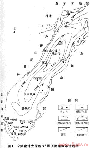 綜合以上研究,構造部位、地應力、封蓋層共同控制煤層氣的富集與保存,是寧武盆地南部煤層氣富集的主控因素,W02井以東、W04井以南地區(qū)太原組9#煤埋深小于1500m,處于應力場低值區(qū),煤層滲透性好、煤層頂?shù)装宸馍w條件好,同時處于構造上斜坡帶,利于煤層氣井高產(chǎn),是煤層氣富集高產(chǎn)有利地區(qū)。