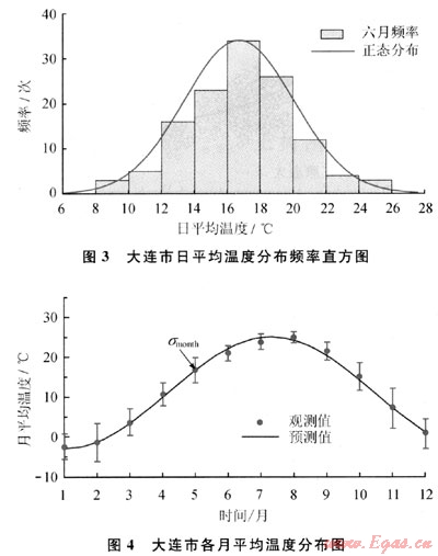如果用有效溫度(Teff)代替日平均溫度(T)來描述月平均溫度(Tm)隨月份的變化曲線,經(jīng)驗證分布規(guī)律相同。綜上可得,大連地區(qū)各個月內(nèi)日有效溫度(Teff)分布規(guī)律如式(7)所示。