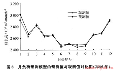 根據(jù)2.2所介紹的方法,以2006年為例,得到燃?xì)庠仑?fù)荷預(yù)測模型的預(yù)測結(jié)果,如圖8所示。