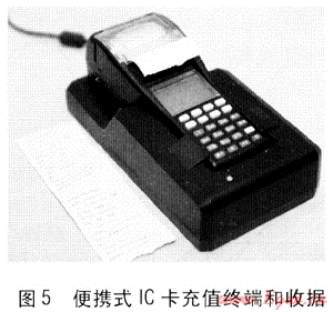 2009年10月起,我公司開始進(jìn)行該項(xiàng)目的開發(fā),經(jīng)過5個月的開發(fā),正式于2010年2月9日在某住宅區(qū)物業(yè)進(jìn)行試點(diǎn),目前系統(tǒng)運(yùn)行穩(wěn)定,便攜式IC卡充值終端一次充值成功率約90%。便攜式IC卡充值終端和收據(jù)見圖5。