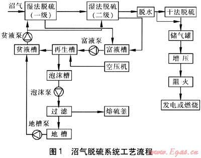 ④ 沼氣脫硫系統(tǒng)工藝流程