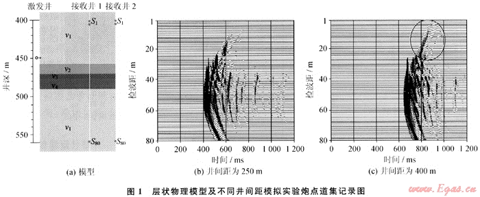 從應(yīng)用的角度看,井間距越大所研究的井間介質(zhì)橫向范圍越大,因此井距越大越好。從理論上來(lái)講,井間距越大地震波傳播的路徑越長(zhǎng),能量穿過(guò)介質(zhì)被吸收衰減得越多,對(duì)井下震源的要求也越高,實(shí)現(xiàn)起來(lái)越困難。