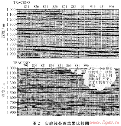 在常規(guī)相對保幅處理流程中,球面擴(kuò)散振幅恢復(fù)模塊只能進(jìn)行振幅恢復(fù)而不能進(jìn)行頻率恢復(fù)。因此,用HHT疊前分頻頻率和振幅恢復(fù)模塊取代球面擴(kuò)散振幅恢復(fù)模塊,從而達(dá)到疊前同時(shí)進(jìn)行振幅和頻率恢復(fù)的目的,提高疊前數(shù)據(jù)的分辨率。聯(lián)合應(yīng)用混合相位反褶積與預(yù)測反褶積,進(jìn)一步提高分辨率、壓制鳴震和多次波。疊加后,進(jìn)一步應(yīng)用HHT疊后分頻頻率恢復(fù)技術(shù)或小波提高分辨率技術(shù)以及小波去噪技術(shù)。