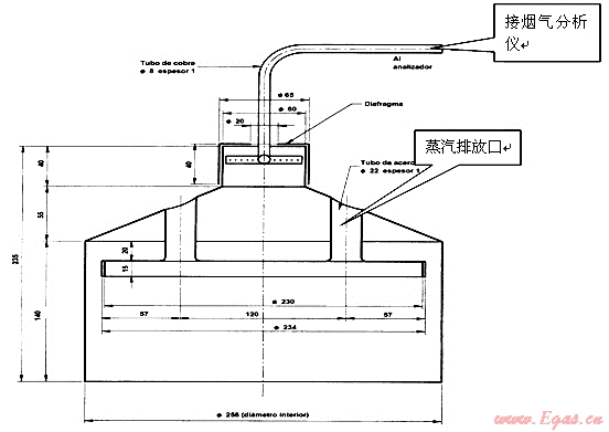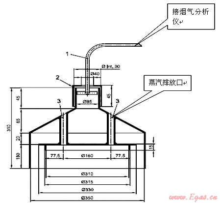 歐洲和南美的取樣器是個(gè)半封閉的罩形結(jié)構(gòu),煙氣通道和水蒸氣通道隔離,取樣原理采用我國(guó)燃?xì)鉄崴鞯姆绞?,也是按照熱?fù)荷的分級(jí)系列化制造,但是分級(jí)較少,不同熱負(fù)荷的燃燒器用鍋直徑和加水量有相同的情況,這種取樣器結(jié)構(gòu)和制作復(fù)雜,消耗材料多,笨重、造價(jià)高,對(duì)于系列化的結(jié)構(gòu)尺寸不完整,焊接要求高且難以保證,特別對(duì)于小功率燃燒器來講高度尺寸顯然不合理,甚至?xí)⒒鹧嫒堪菰谌悠鲀?nèi),造成二次空氣無法進(jìn)入,隨著使用時(shí)間增長(zhǎng)變形也越來越大,焊接應(yīng)力致使修復(fù)困難。