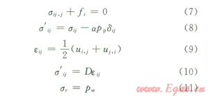根據(jù)多孔介質(zhì)彈性理論,并視井壁穩(wěn)定問(wèn)題為平面應(yīng)變問(wèn)題,則相應(yīng)的平衡方程、幾何方程、本構(gòu)方程以及邊界條件分別為: