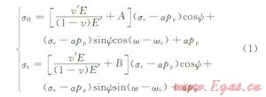 式中AB為構(gòu)造應(yīng)力系數(shù),EE'、ν、ν'分別為橫觀各向同性體的彈性參數(shù),φ為地層傾角,ω為地層傾向,ω0為水平最大地應(yīng)力方位。