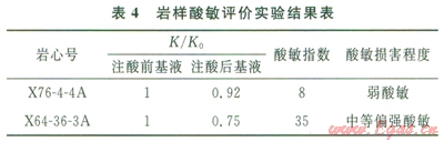 2 儲層酸敏評價(jià)實(shí)驗(yàn)