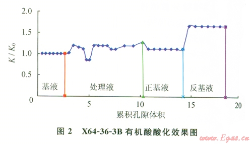 酸液配方:1%HCl+X%有機(jī)酸l+Y%有機(jī)酸2+1%緩蝕劑+0.5%助排劑+0.3%黏土穩(wěn)定劑+0.1%鐵離子穩(wěn)定劑。