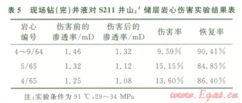 從表5中可以看出,現(xiàn)場鉆井液完井液對山23儲層傷害較低,且傷害后恢復(fù)率可達84.85%以上,這表明恢復(fù)性良好,具有很好的暫堵保護作用,兩口井試產(chǎn)都獲高產(chǎn)。