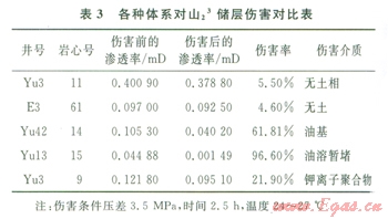 從表3中實驗數(shù)據(jù)可以看出,對比的幾種常用鉆井液完井液體系中,無土相低傷害暫堵鉆井液完井液體系的靜態(tài)傷害率最小,小于10%,屬于較輕度傷害。