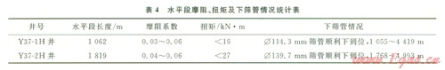 從表4中數(shù)據(jù)可以看出,現(xiàn)場固體和液體潤滑劑復(fù)配使用后,潤滑效果顯著提高,鉆井過程中,摩阻和扭矩得到有效控制,摩阻系數(shù)均在0.06以內(nèi),電測及下篩管均順利。