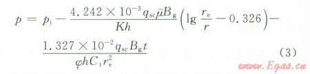 根據滲流力學理論,對于封閉氣藏中定產生產井,當處于擬穩(wěn)定流動時,在任意一點處有: