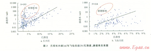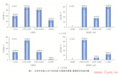 總體上,長興組儲(chǔ)層以中孔中高滲、低孔中低滲儲(chǔ)層為主,高孔高滲儲(chǔ)層次之,儲(chǔ)層物性較好,有利于油氣的高產(chǎn)富集。