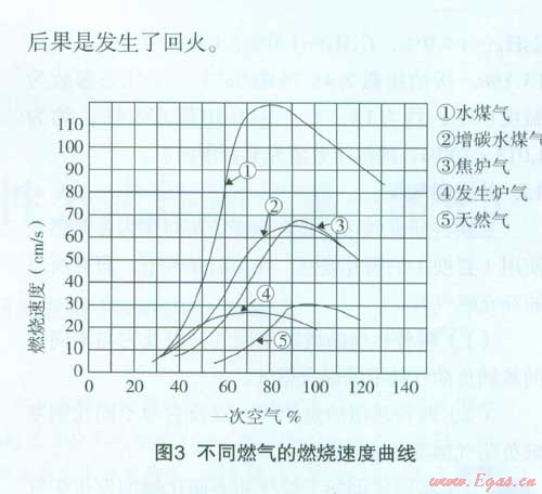 即圖4中置換后的工作點(diǎn)X3,就不會(huì)遇到離焰情況。從燃燒器的設(shè)計(jì)要求來(lái)看,對(duì)一次空氣系數(shù)就有規(guī)定的要求。以上只是從離焰曲線論離焰,不能認(rèn)為調(diào)整一次空氣系數(shù)就可解決燃?xì)獾幕Q問(wèn)題。