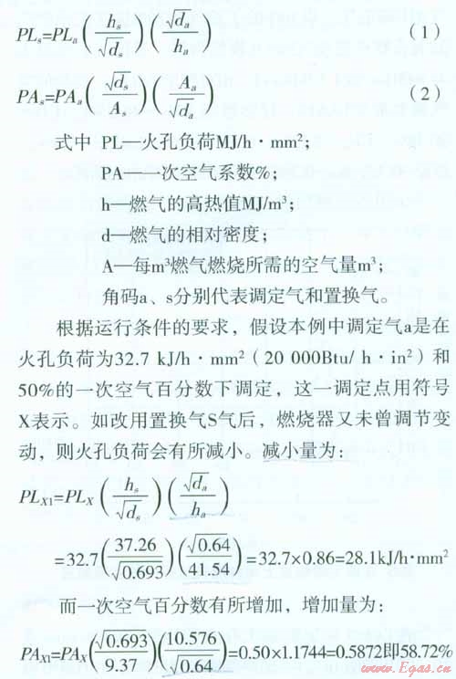 如前所述,本文是介紹美國(guó)燃?xì)饣Q性的求解公式,在此,先說(shuō)明燃?xì)饣Q前后,火孔負(fù)荷和一次空氣系數(shù)發(fā)生變化的計(jì)算公式,以加深對(duì)這些公式應(yīng)用的理解。公式導(dǎo)出的過(guò)程則隨后有所論證。