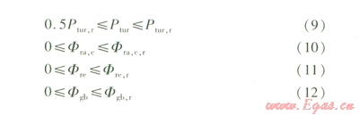 約束條件主要包括設備性能約束、設備負荷率約束、能流平衡約束條件。