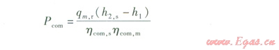 h2,s——等熵壓縮終了狀態(tài)CO2工質比焓,Jkg