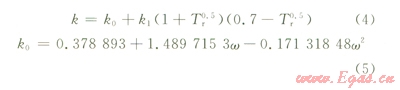 式中Tr=TTcTc為臨界溫度,K;Tr為絕對(duì)溫度和臨界溫度的比值;k可以表示為: