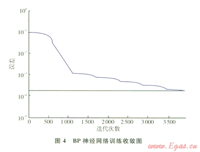 由圖4可知BP神經(jīng)網(wǎng)絡(luò)的收斂性良好,說(shuō)明程序的下一步預(yù)測(cè)有效。表3BP神經(jīng)網(wǎng)絡(luò)預(yù)測(cè)值與實(shí)際值的對(duì)比和誤差。