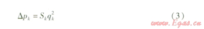 第k條支路阻力Δpk的計算式為: