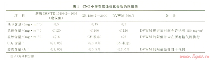 1)所謂潛在的含義是在沒有液相水存在的條件下,這些化合物均無腐蝕性”。因而新版ISOTR 15403-2-2006制訂CNV質(zhì)量控制指標(biāo)的基本前提是:必須深度脫水以防止CNG在加氣過程及使用過程中形成液相水。