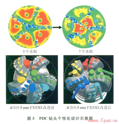 3)5個標準噴嘴更改為7個小噴嘴,增強井眼清潔能力。