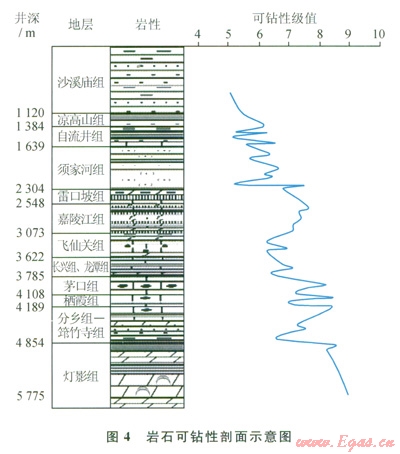 四川盆地深井—超深井鉆井提速一直是制約天然氣勘探開發(fā)的難題,氣體欠平衡鉆井、PDC鉆頭的應用一定程度提高了深井鉆井速度,但還不能滿足國家經(jīng)濟發(fā)展對天然氣勘探開發(fā)的形勢和要求。而四川中部地區(qū)的樂山  龍女寺古隆起儲層埋藏深,垂直井深超過5000m,鉆遇地層類型多,巖性復雜,提高鉆井速度遇到以下4個方面的工程地質(zhì)難點。